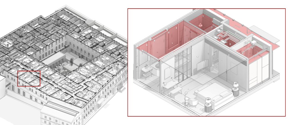Inoltre per rendere più efficiente il processo è stato predisposto all’interno dello studio un dipartimento altamente specializzato per la creazione dei modelli BIM dei prodotti utilizzati nei progetti. Le famiglie create comprendono, tra gli altri, arredi, porte, plumbing fixtures, special equipment e dettagli tipici.
